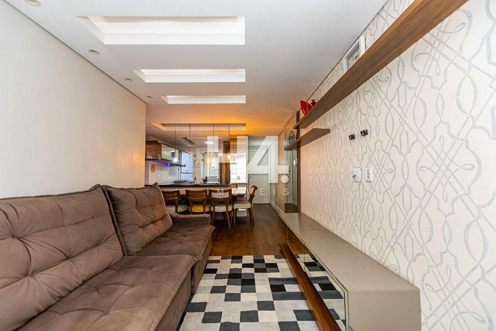 Living: Sala integrada à cozinha americana, criando um ambiente moderno e amplo para receber amigos e família.