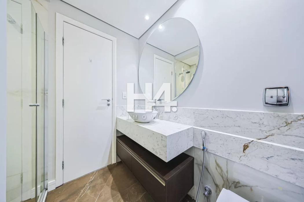 Apartamento todo reformado, espaçoso, possui sala de estar e sala de jantar, num ambiente integrado e aconchegante, com ar condicionado. Sacada com churrasqueira à carvão, 3 quartos sendo uma suíte, todos com armários, e ar condicionado. Banheiros finamente decorados com mármore branco Paraná Calacata premium (Michelângelo) com box blindex, chuveiro à gás, com armários planejados, e piso em porcelanato Portinari e metais da Docol. Cozinha e churrasqueira com acabamentos em quartzito Desert White que suporta temperaturas mais quentes, e resistente a manchas, blacksplash (mosaico), da linha metal da Porcelanosa, móveis planejados, fogão, lavanderia com armário planejado e banheiro completo de empregada. Piso vinílico de alta qualidade, importado da Casa Nova Decorações. Uma vaga de garagem no subsolo 2, número 69. Posição: Fundos.