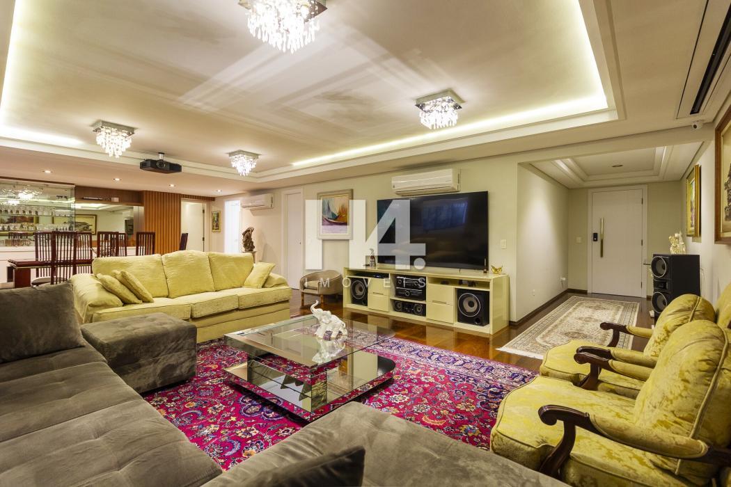 Preciosidade de apartamento, na melhor localização do Batel, a duas quadras da praça do Japão. Excelente em metragem, o imóvel conta com 240 metros, 4 quartos, 5 banheiros, três salas extremamente amplas, pussuindo uma delas um telão de 160 polegadas. Amplo, iluminado e arejado, com hall de entrada individual; living para 4 ambientes com pé direito alto;Duas vagas de garagem cobertas, estacionamento para visitantes, salão de festas, playground e portaria 24 horas.