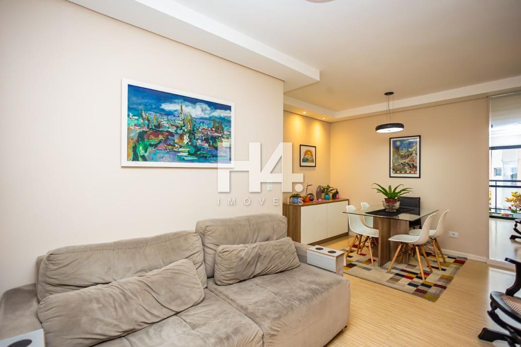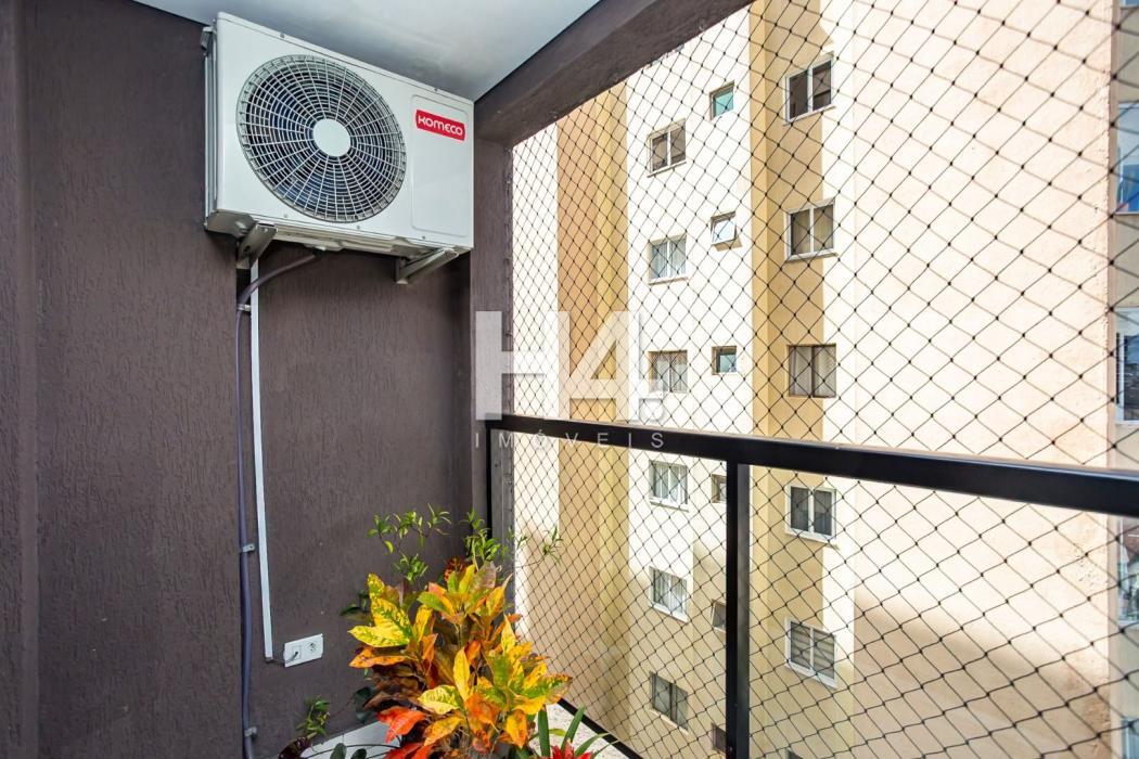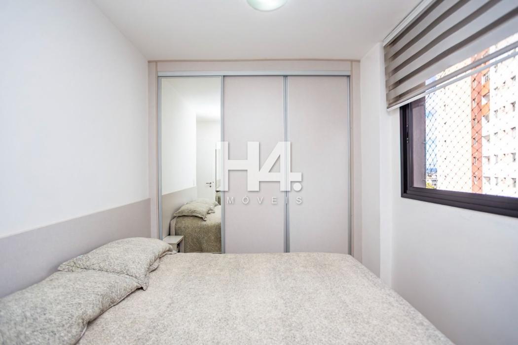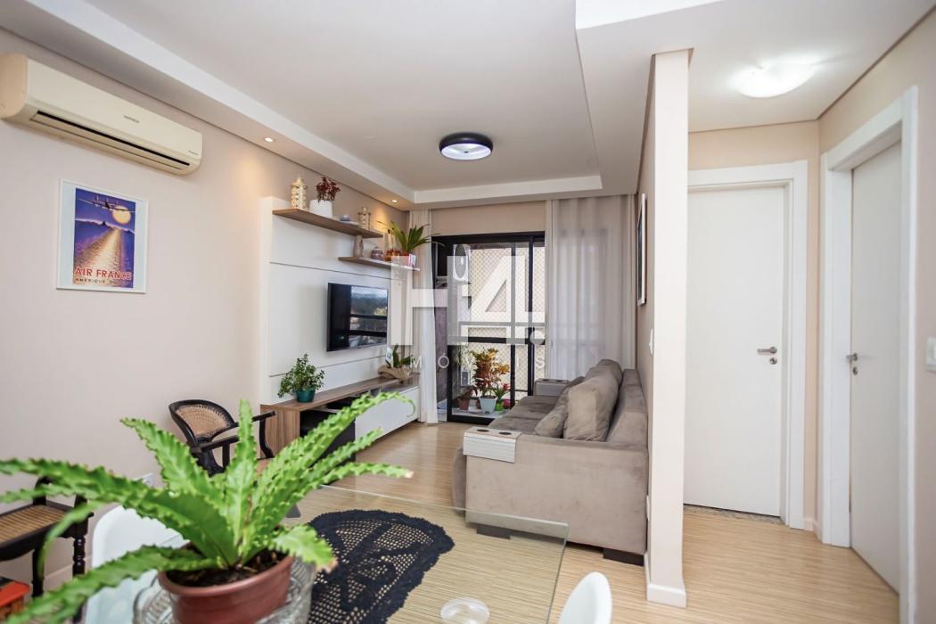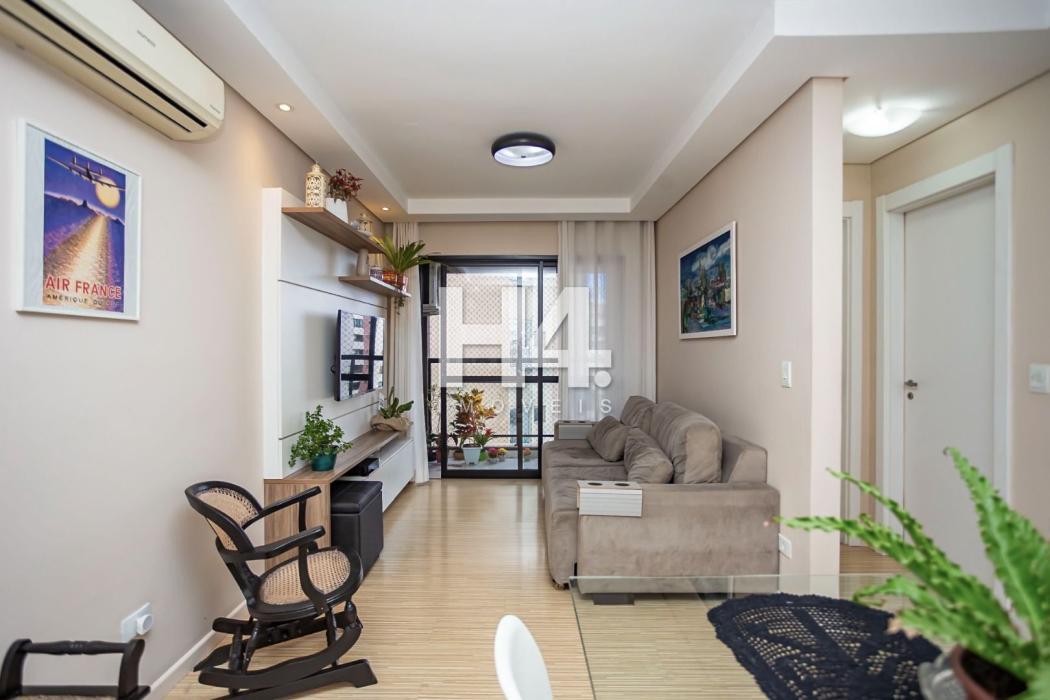 Apartamento 60,32 m² privativos, todo mobiliado com 77,54 m² totais.