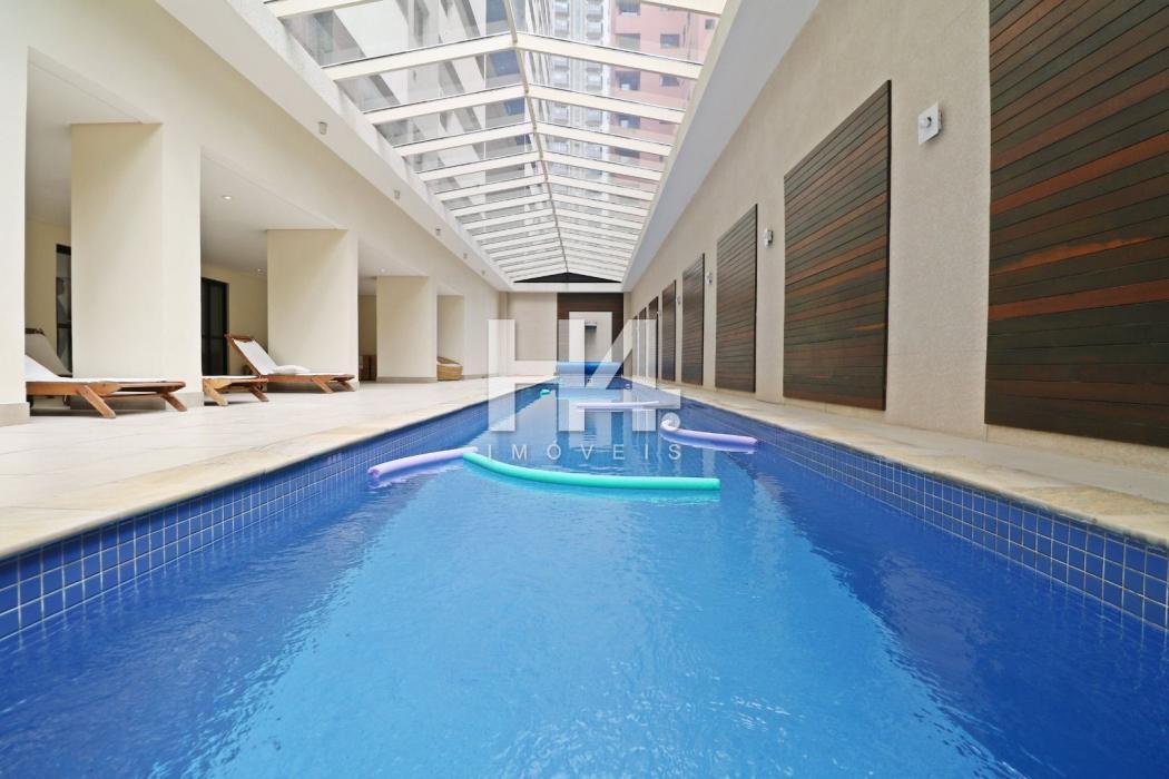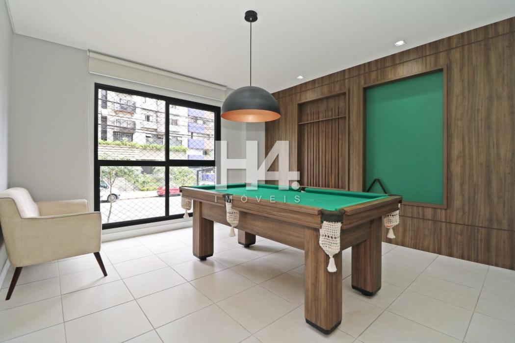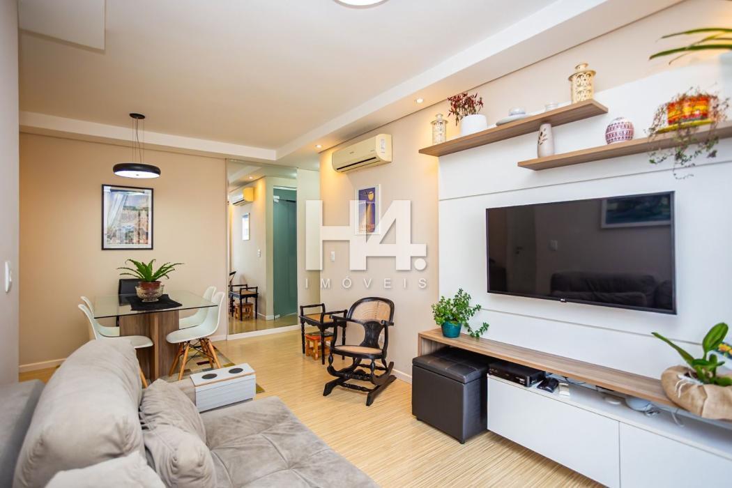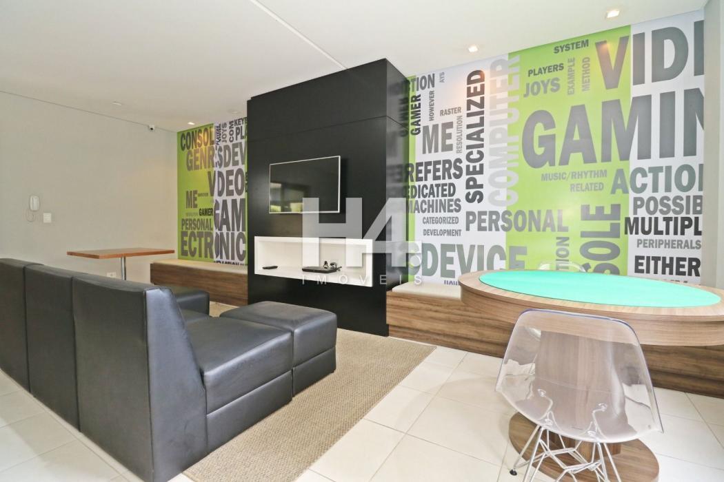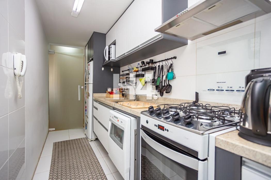 Apartamento 60,32 m² privativos, todo mobiliado com 77,54 m² totais.