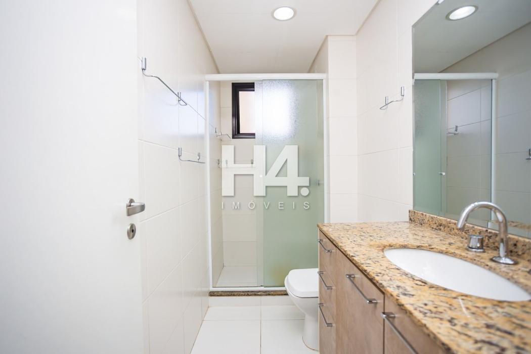 - Banheiro com box e gabinete de pia tampo em granito;