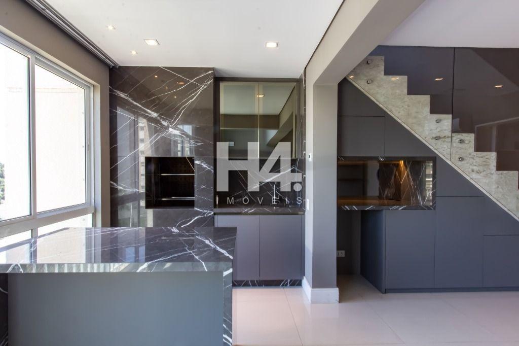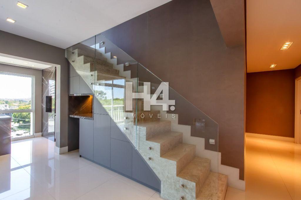 A planta é incrível, e você encontra: sala para 3 ambientes (com pé direito duplo); gourmet com churrasqueira; lavabo; ampla cozinha toda equipada (com marcenaria e eletro); área de serviço; dependência de empregados completa; 4 quartos (sendo 2 suítes) e 3 vagas de garagem!