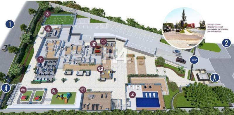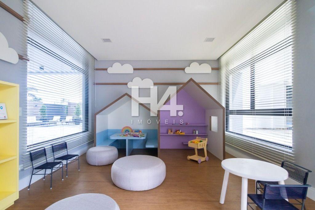 O condomínio oferece uma ampla estrutura de lazer, com piscina aquecida e coberta, espaço gourmet, churrasqueiras, forno de pizza, salão de festas, salão de jogos, academia, brinquedoteca, playground, quadra poliesportiva, bicicletário e áreas verdes.