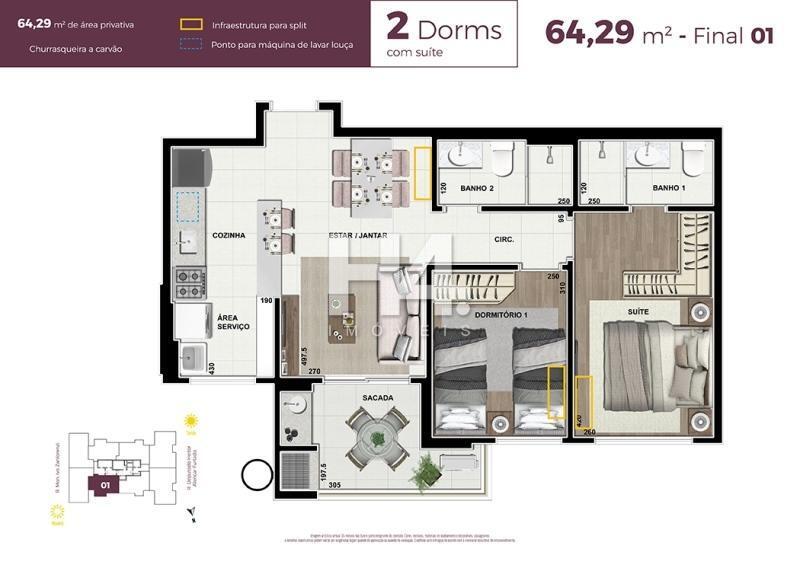 64,00 m² Área privativa