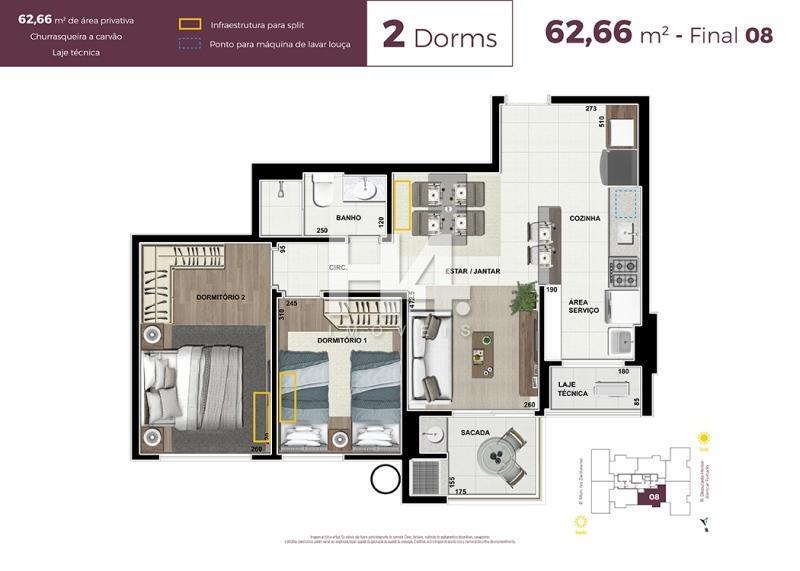 Desocupado e pronto para morar, o apartamento está em uma torre única com 21 andares, garantindo exclusividade e privacidade, enquanto os dois elevadores e o acesso por via de desaceleração tornam o dia a dia mais prático e tranquilo.