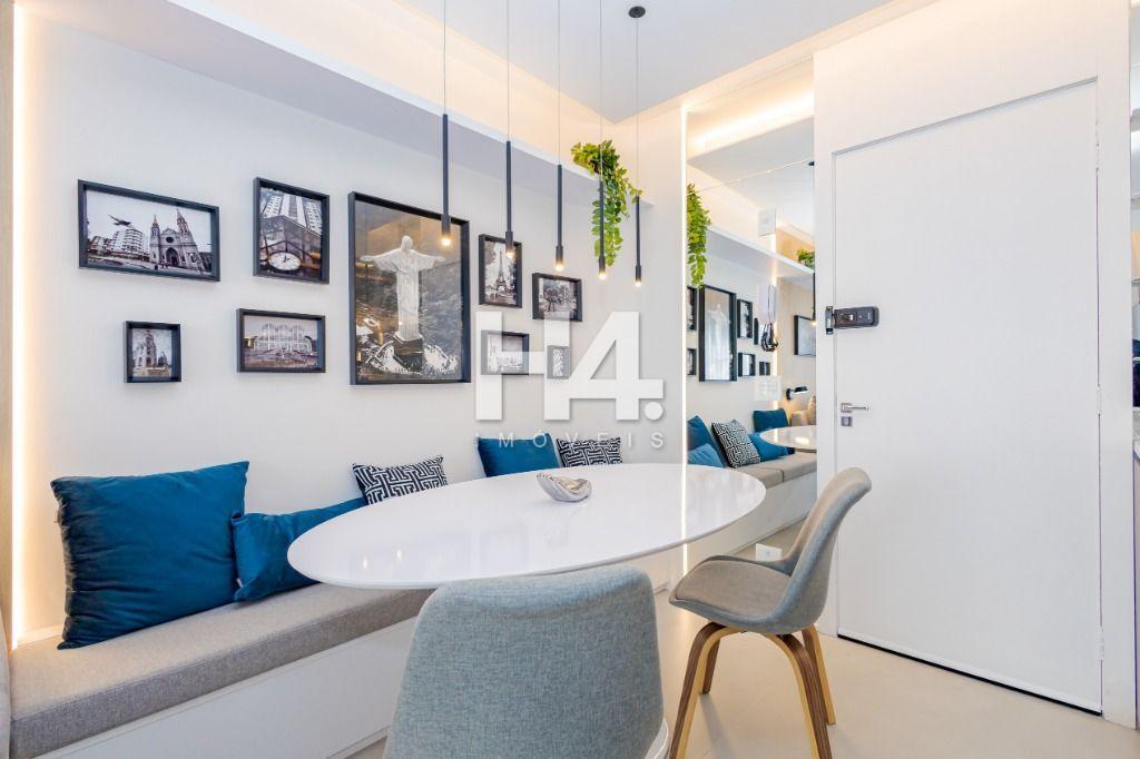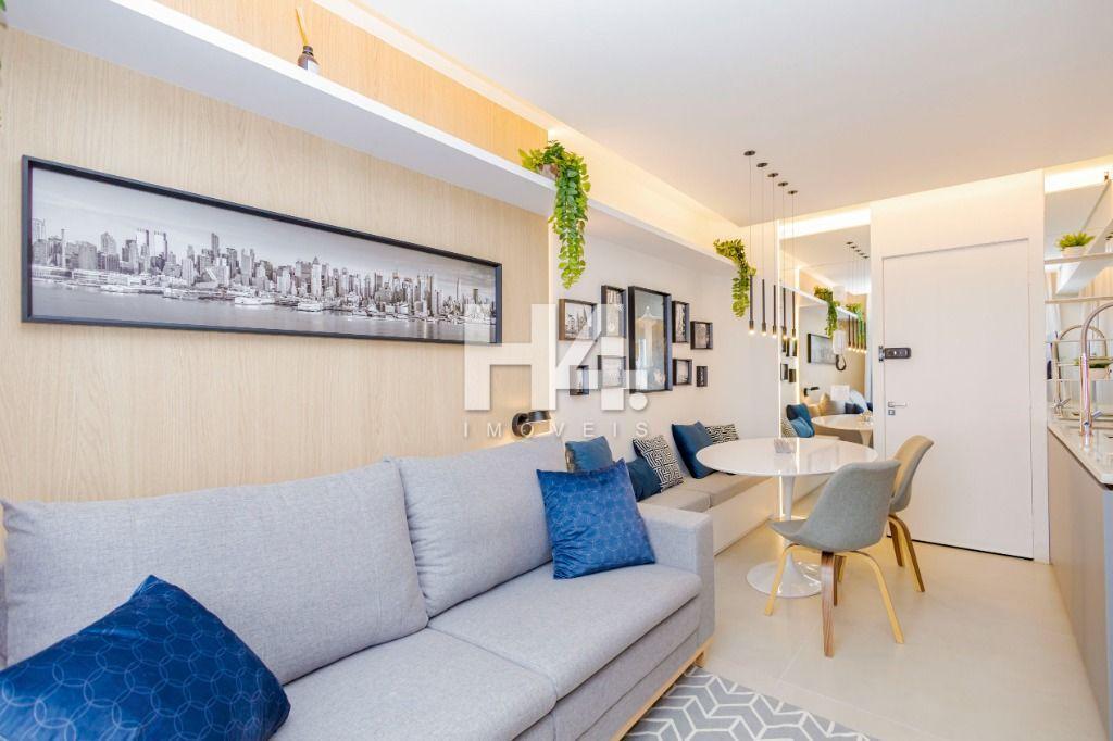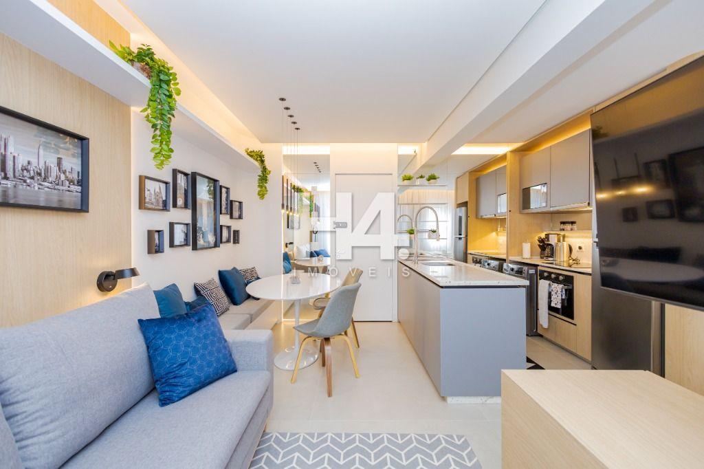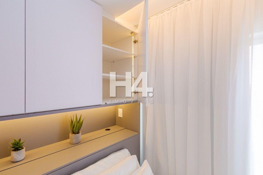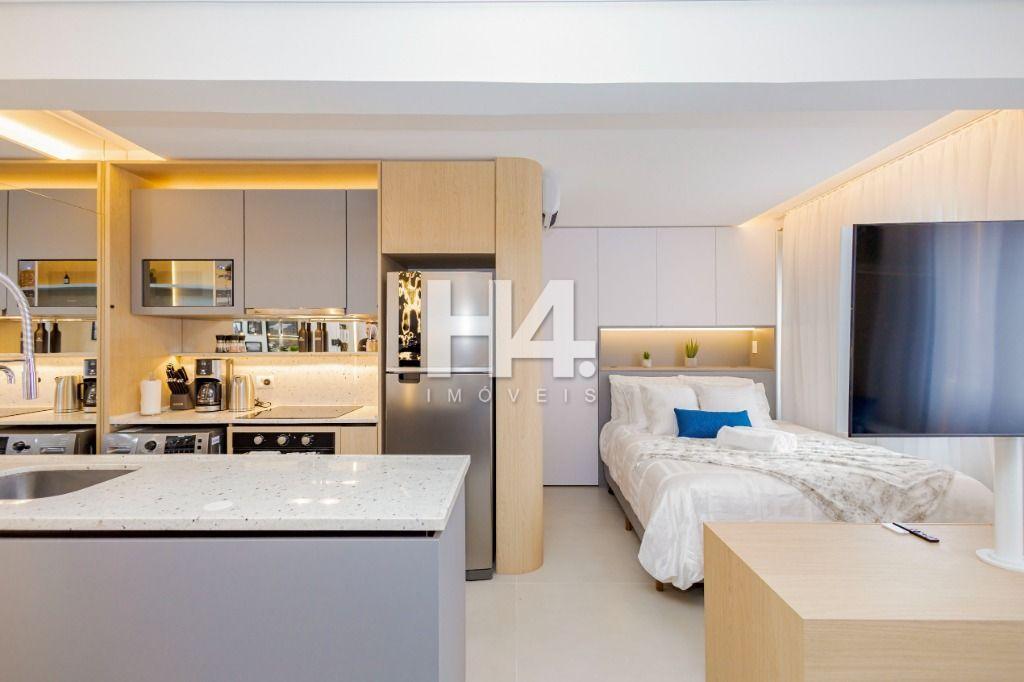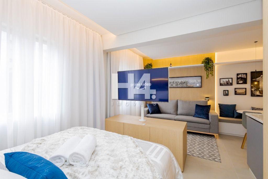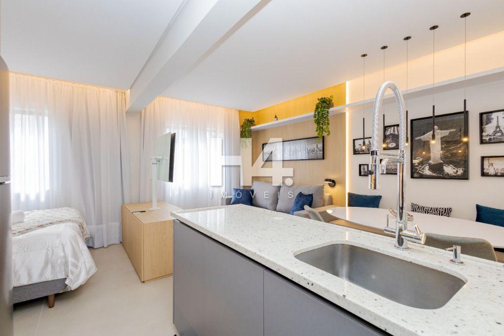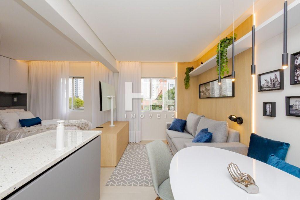 Studio todo reformado com acessórios de qualidade e ótimo gosto. Cozinha planejada com móveis de primeira linha, ficando cooktop, forno e coifa. Sala conjugada com o quarto em teto em gesso e iluminação em led. No banheiro vidro em blindex. O imóvel está localizado em frente a Faculdade Evangélica Mackenzie no Bigorrilho.
