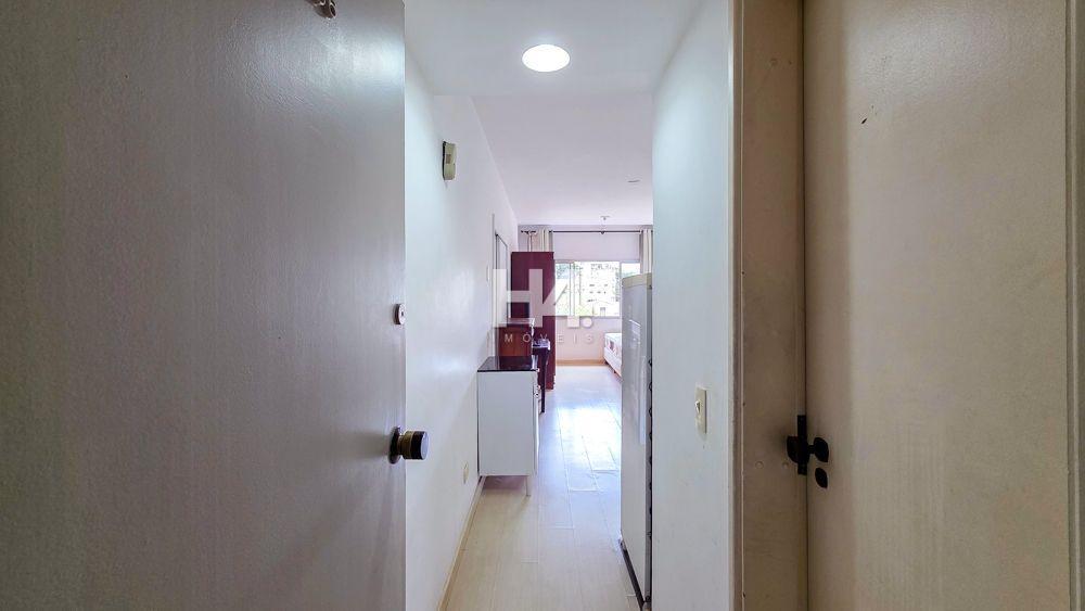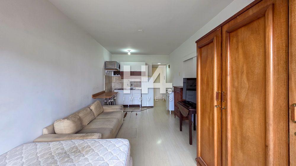 A unidade é um Studio compacto e muito funcional, com ambiente integrado de dormitório e estar, cozinha e banheiro privativo, perfeito para quem busca praticidade no dia a dia. No 4º andar, o apartamento tem boa iluminação natural, vista aberta e posição solar oeste, trazendo conforto e sensação de amplitude ao espaço.