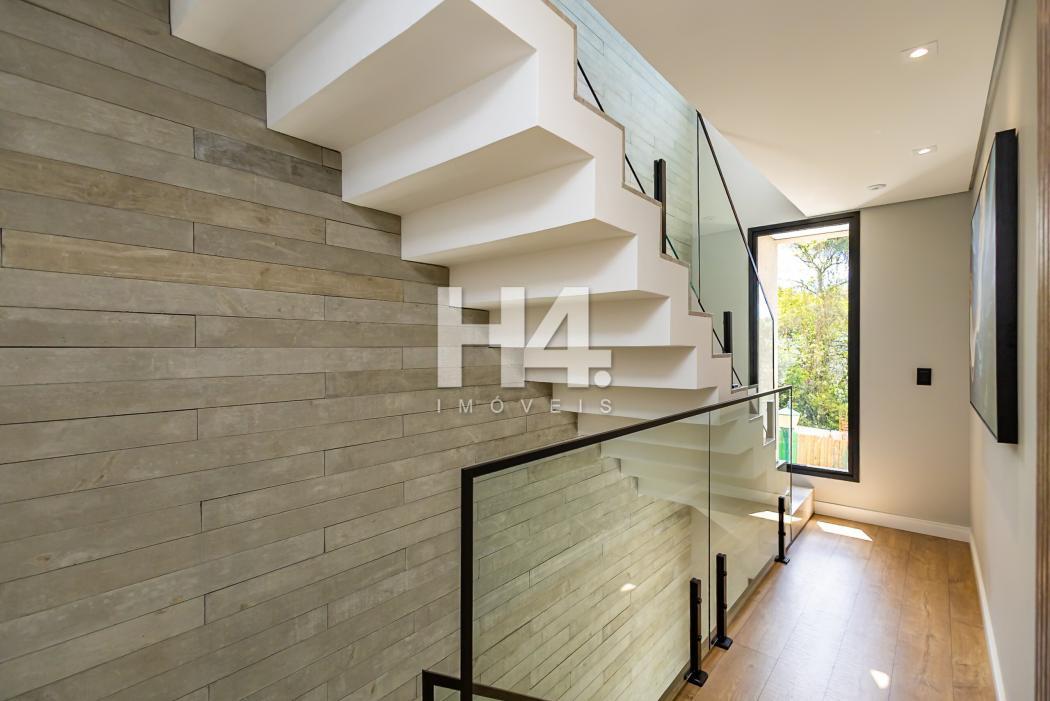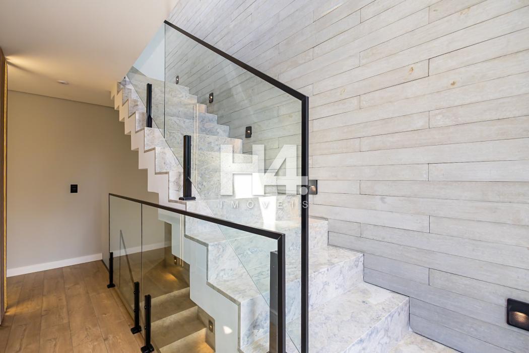 - Escadas com revestimento em Granito e guarda-corpo de vidro e moldada degrau a degrau