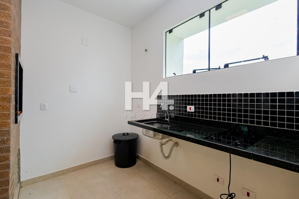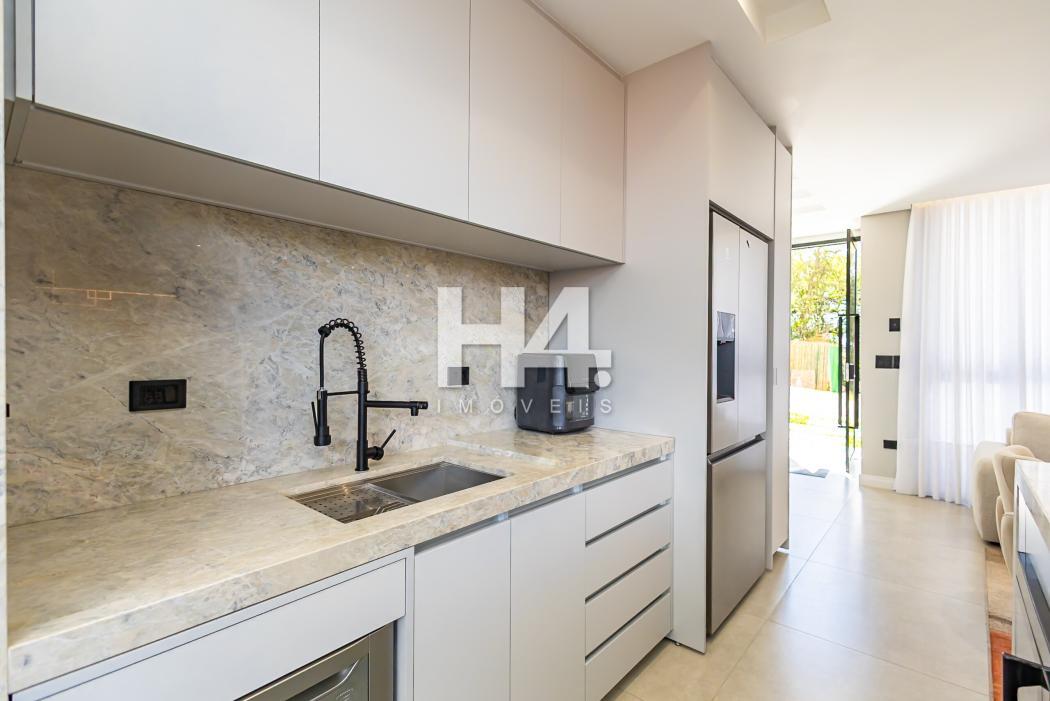 - Cozinha com ilha e churrasqueira em conceito aberto toda mobiliada e equipada com lava louças, microondas, forno, fogão e coifa