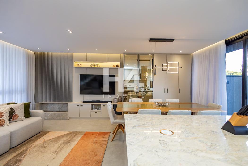 - Sala para dois ambientes jantar/estar mobiliadas e equipada com TV, home theater e lareira