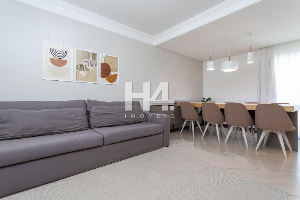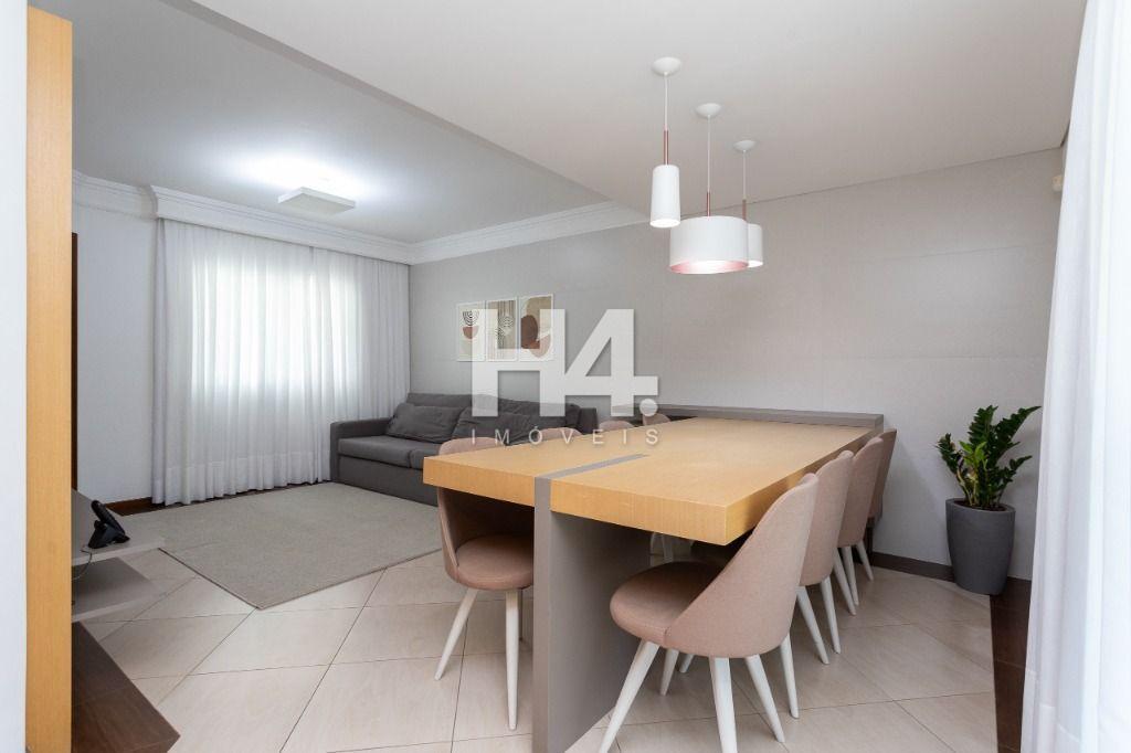* permanecem mesa com cadeiras, sofá, painel de TV;
