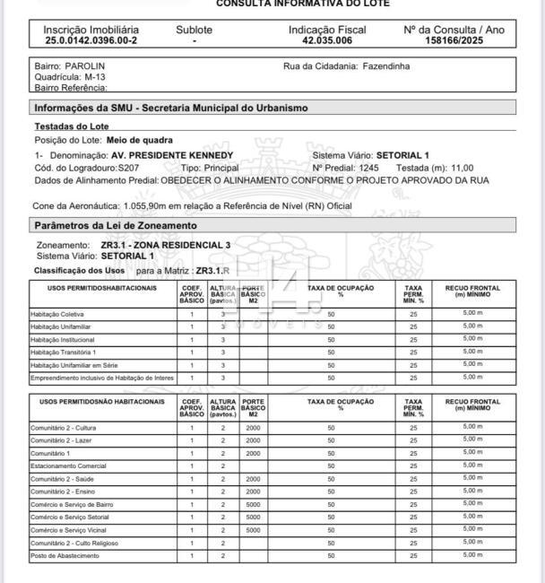 Zoneamento: ZR3.1 Zona Residencial 3 | Sistema Viário: Setorial 1
